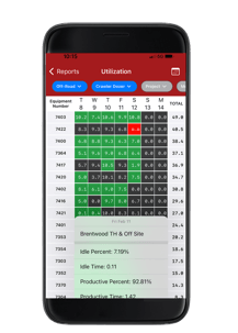 Rich tracks reports every day (shown below) that show the number of hours the machines run. He then shares these idle reports with his team so they can get an idea of what their equipment utilization is.
