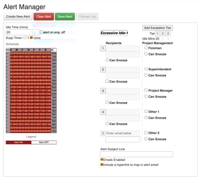 When contractors can see which pieces of equipment are idling, it allows them to take corrective action and cut costs when necessary. FleetWatcher also offers escalating Idle Alerts. This feature informs managers when an idle time threshold has been exceeded. Users set an acceptable idle time and when that threshold has been reached, an alert is sent through email or text.